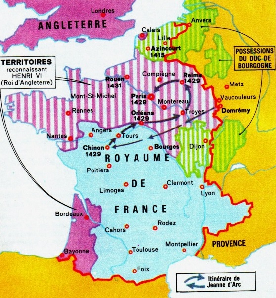 « Cependant, les malheurs de la guerre et les excès des Anglais font naître peu à peu la haine de l’envahisseur. Le sentiment national s’affirme » (cf texte et carte ci-jointe du manuel « Histoire Louis Girard »).