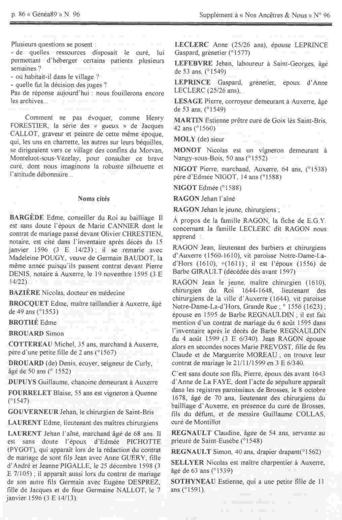 Marguerite, née en 1756, épouse d’Adrien PENNIER, notaire à Vézelay, veuve assez tôt, décède en 1810 dans la demeure de ses sœur et beau-frère à Saint-Pierre le Moustier (58). Cette dernière, Madeleine, née en 1766, épouse Louis François MASLIN maire de Saint Parize le Chastel en 1797.