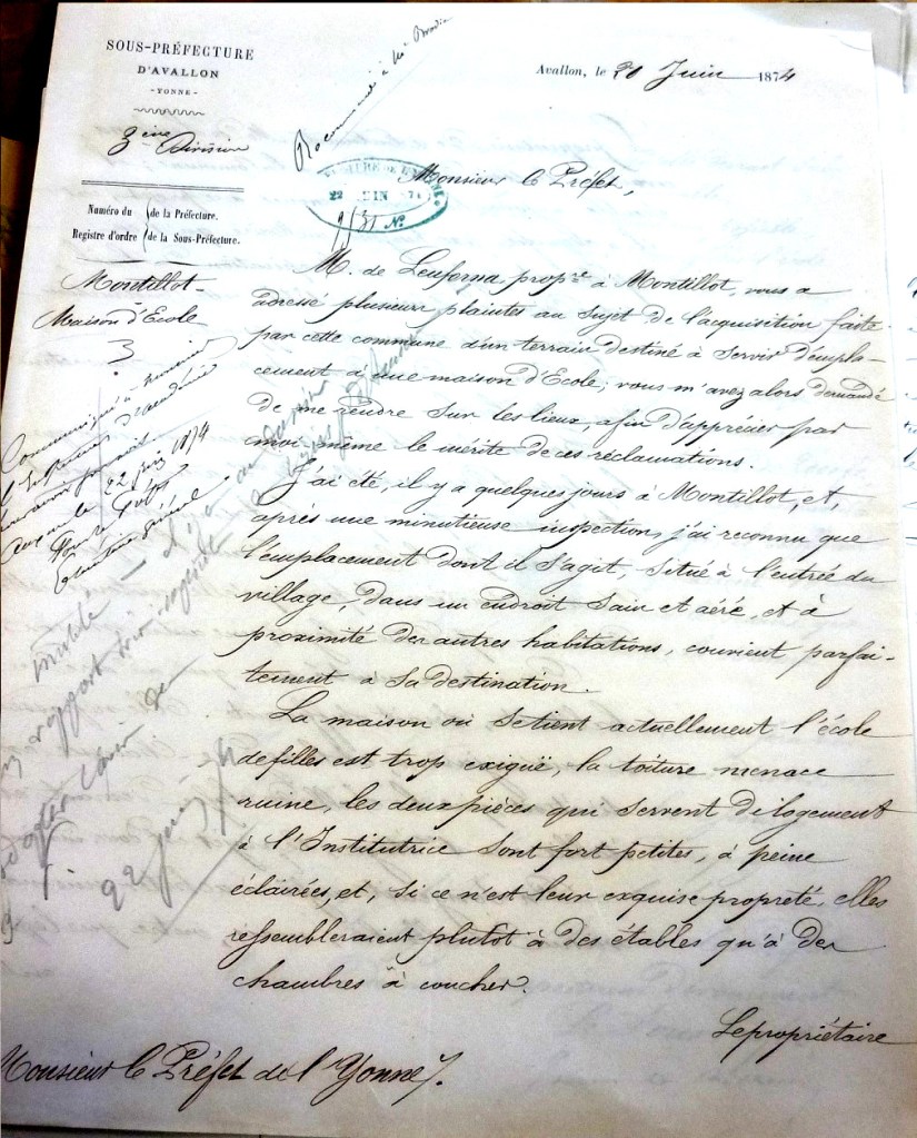 Trois documents découverts aux archives départementales de l’Yonne (ADY) ont permis de comprendre un peu mieux cette histoire: l’acte authentique de vente à la mairie de Montillot, datant de 1820, un dossier notarié et hypothécaire datant de 1811 et l’inventaire après décès d’un ancêtre (1755), à Vézelay.