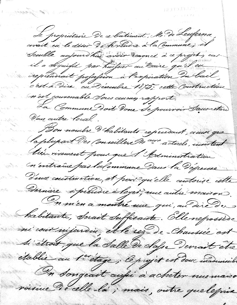 La décision de mettre en vente le presbytère était prise dès le 9 juillet 1946, sous le mandat du maire Alfred DEFERT. En avril 1948 deux lots sont créés et l’administration des domaines fixe la mise à prix à 280000 et 200000F. En l’absence d’offre d’achat, le conseil municipal demande l’autorisation de vente à l’amiable. Pour cela, la municipalité choisit de céder le bâtiment d’habitation, ancien presbytère, et de conserver l’autre partie de granges et ferme. Peu après, en mars 1950, il est créé dans ce dernier local la salle des fêtes et un foyer rural. Le bien dont il est question était en effet déjà composé depuis longtemps de deux parties distinctes, dont jouissait d’une part le curé du village dans le bâtiment principal, autrement dit « le presbytère », et la seconde partie dévolue à différentes fonctions: elle a en particulier abrité l’école des garçons et la mairie, avant la construction d’un nouveau bâtiment neuf à l’entrée du village puis l’école des filles avant son transfert dans d’autres lieux.